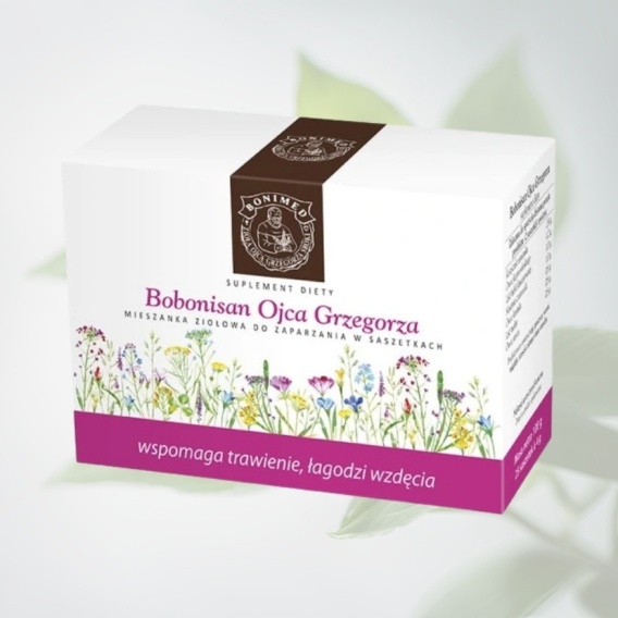 Preparat ziołowy Bobonisan Ojca Grzegorza to starannie skomponowana mieszanka ziół, wspomagająca prawidłową pracę układu pokarmowego. Dzięki zawartości rumianku, kopru włoskiego, kminku oraz babki lancetowatej, wspiera trawienie, łagodzi wzdęcia i sprzyja utrzymaniu właściwej flory bakteryjnej jelit. Zawarte w składzie zioła wpływają także korzystnie na odporność oraz pomagają w zachowaniu wewnętrznej równowagi i spokoju.