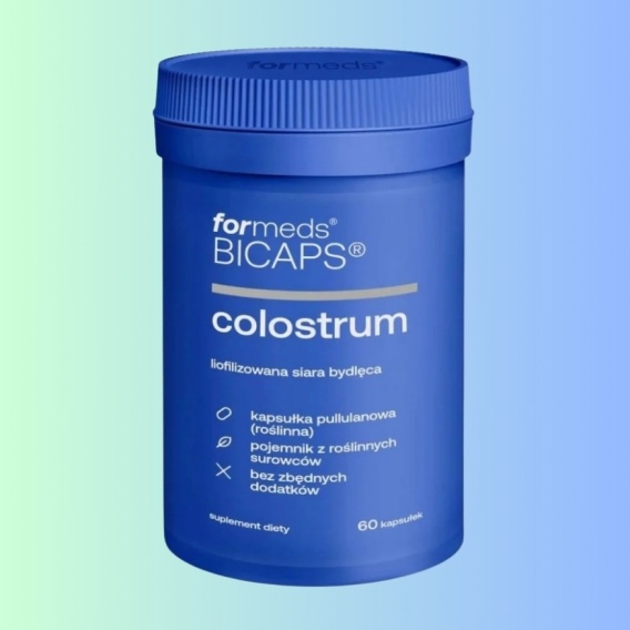 Suplement diety Formeds Bicaps Colostrum to naturalne wsparcie mechanizmów obronnych organizmu. Produkt zawiera wysokiej jakości liofilizowane kolostrum wołowe (siarę mleka), które jest źródłem cennych immunoglobulin G, laktoferyny oraz polipeptydów bogatych w prolinę (PRP), wspierających prawidłowe funkcjonowanie układu odpornościowego. Suplement dostępny jest w kapsułkach roślinnych, bez sztucznych dodatków, barwników i konserwantów.